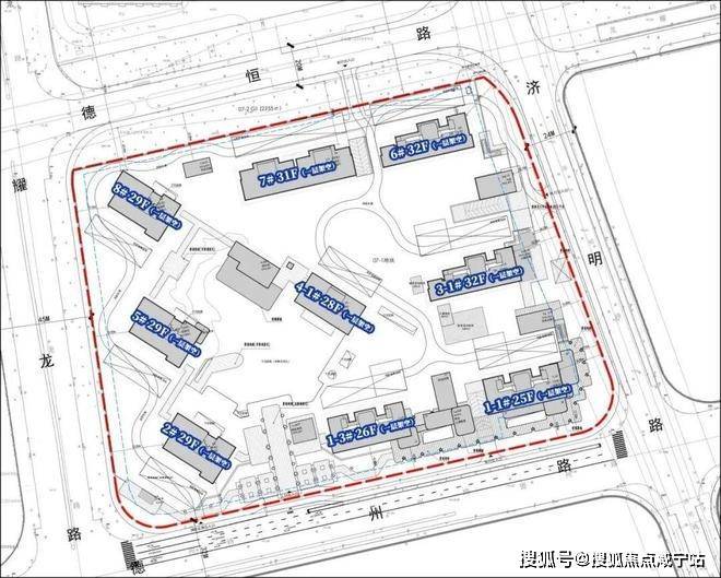 根据项目规划设计方案,07-01地块拟建9幢超高层住宅,其中7幢百米高层住宅(28-32层)、1 幢83米高住宅(25层)和1幢86米高住宅(26层),若干社区配套用房以及部分商业设施,共计规划约794户。建面约120㎡以下中小套型占比要求不低于40%。