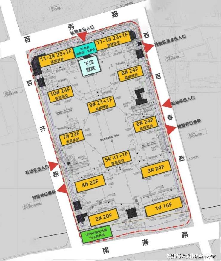 项目基地东至西百春路、南至南港路、西至百齐路、北至百秀路。