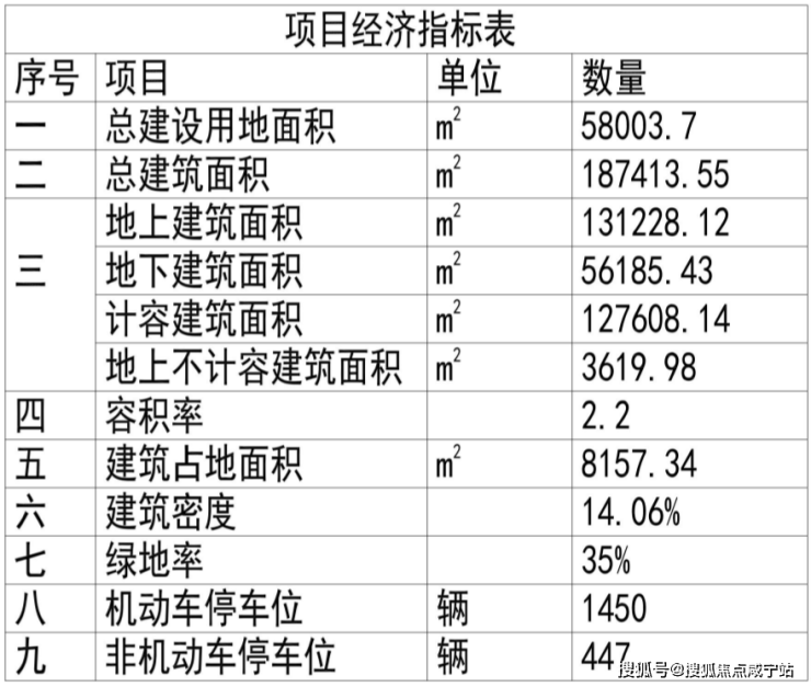 主要经济技术指标详见下表: