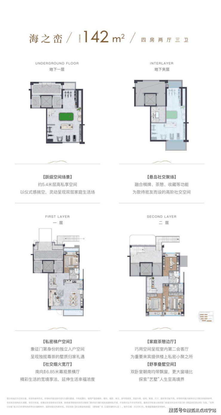 138㎡四房:5层叠墅高得房率,3.4米层高+5.4米地下室,可改造影音室、健身房。
