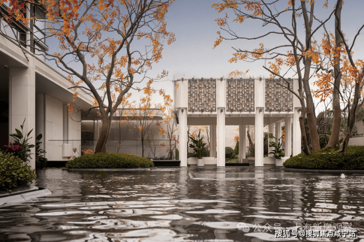 在招商首席设计师制的统筹下,项目实景呈现出来的,不同于传统示范区极尽堆砌的雍容感,而是从建筑到空间的一气呵成:臻选奢材名木而不滥用,汲取经典而非简单复刻,最终融萃成一座极高浓度的景观美学馆。从城市界面步入静谧水院,一场深刻的情绪过渡悄然转换——