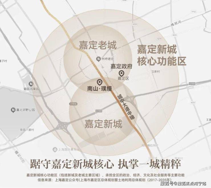 南山璞缦的占位,可以用四个字来概括:城市中轴!每一个伟大的板块,都有一条黄金主轴! 无论是巴黎的香榭丽舍大街,纽约中央公园,还是北京长安街、浦东的世纪大道...这些黄金主轴无一例外地集中了这座城市最顶配的产业资源、文化资源和交通资源,同时,也是这些世界名城的豪宅最为集中的地段!而在嘉定,主轴只有一条:城中路-沪宜公路-嘉闵高架组成的烫金主轴。