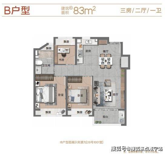 另外,建面约83㎡市面常见的为2房,而项目做到极致3房,相当于以2房价格买3房。