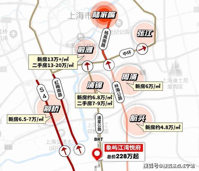2、在浦星公路、林海公路便捷交通加持下,项目与大浦东及闵行的价格剪刀差巨大,性价比超高。