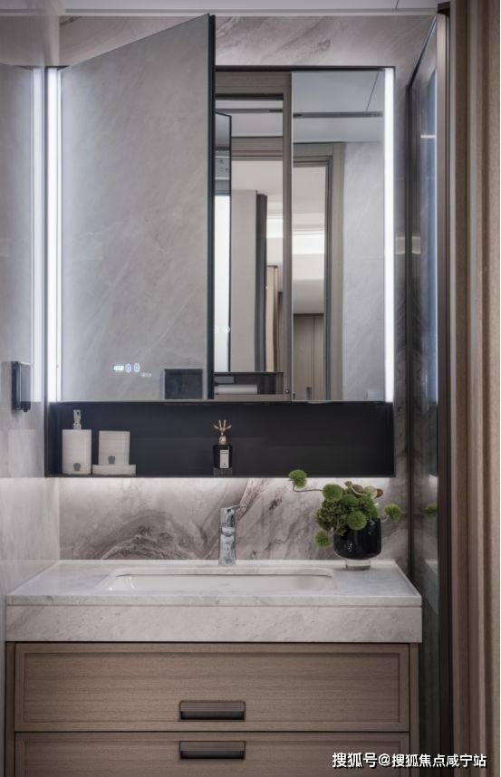 主卫配置魔镜,双面高清镜面,内含美妆冰箱的镜柜及卫浴柜,恒温冷藏。
