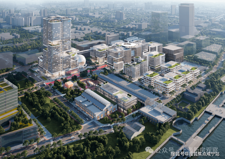 该项目规划的核心下沉庭院,以黄浦江为灵感,将江水流动的波纹形态、动态色彩与滩涂肌理转化为空间语言,通过水景、地形起伏与植物层次的组合,营造富有节奏感的花园场景。