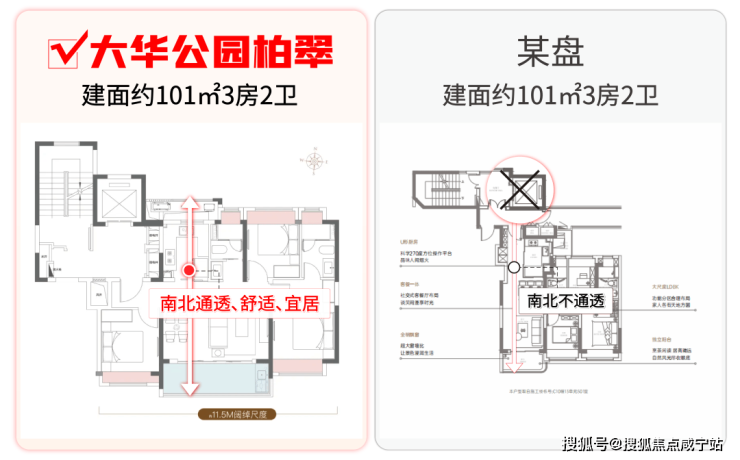 但大华公园柏翠的建面约101㎡3房2卫,却很好的解决了以上所有问题: