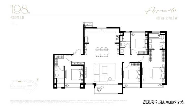 当传统百平户型还在为三开间挣扎,南山璞缦建面约198㎡以约19米四开间朝南面宽+LDKB一体化纵深实现降维打击。主卧折角飘窗延展空中墅级视野,HWCD团队更将海派摩登融入奢装细节,让室内每一寸空间成为艺术展场。