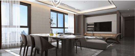 现代又摩登,将居住空间艺术化,既保留了主人居家的尊崇性、私密性,又演绎了宴请宾客的社交性、互动性,全景落地窗设计,将清风阳光迎接入屋,容纳个性和美感,彰显生活的游刃有余。