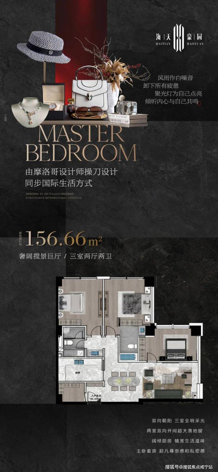 156㎡三房:动静分区明确,U型厨房+双卫设计,适合精英家庭;