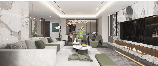 奢装交付:全屋高配精装,同步豪宅标准,部分搭配品牌软装,营造无与伦比的高级感。