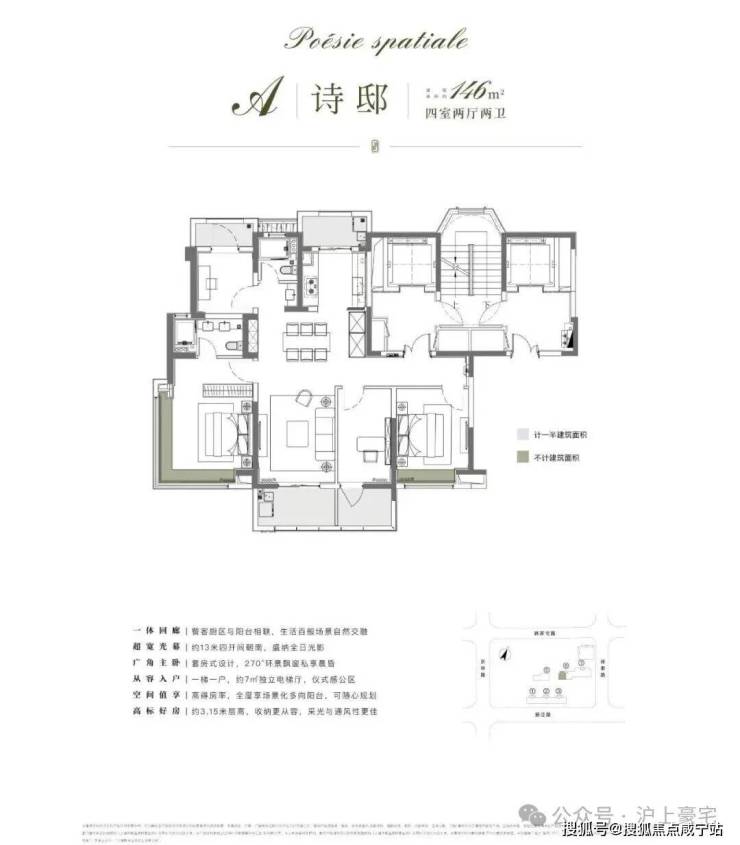 第二:纯大户型配置、一梯一户、270°飘窗、3.15米层高、最多4个阳台的配置...这简直比顶豪的配置还顶豪!
