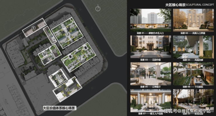 南北酒店式归家入口,南侧入口结合保留风貌建筑,风貌庭院式设计,给到满满的归家仪式感。