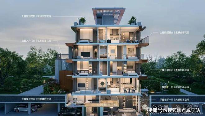 270°超大窗墙比+现代摩登外立面,独享电梯厅+私人电梯,精装交付• 上叠:L形客厅露台+客厅落地窗+房间大窗大飘窗+顶楼星空露台+北入户花园• 下叠:约5.45米可做跃层地下室,多个采光天井,还有南花园。