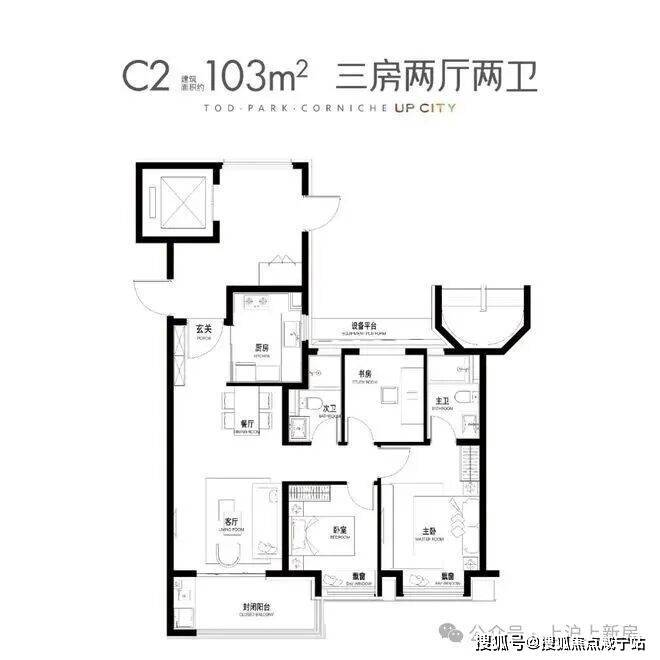 建面约103㎡3房2厅2卫▼