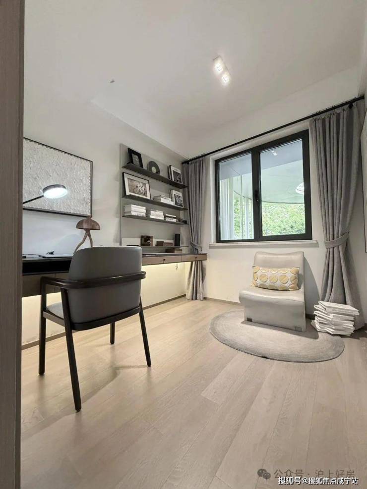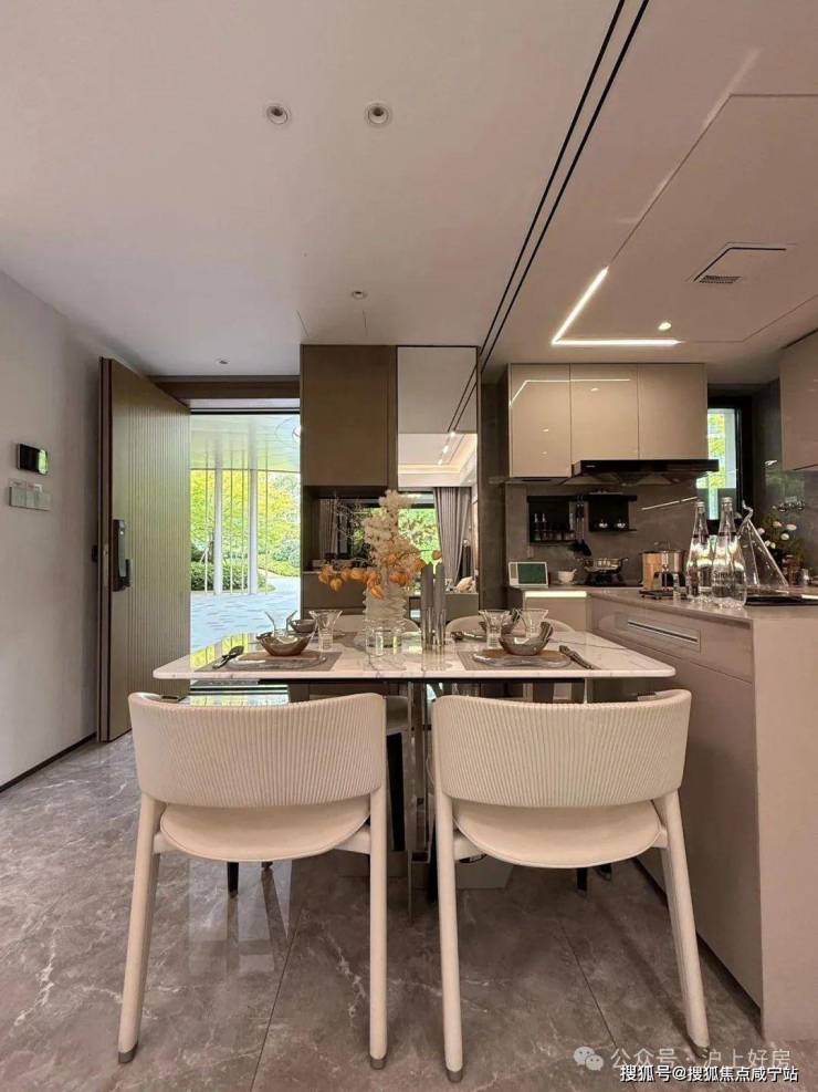 项目提供92-140㎡三至四房户型,主打“大开间+高得房率”设计。以130㎡四房为例,南北通透布局,主卧带飘窗,客卫全屋德系交付,配备中央空调、新风地暖等高端配置。样板间采用光合精装体系,入户门为五合一智能门锁,厨房配备西门子灶具、摩恩直饮水器,主卧配备智能马桶与电热毛巾架,整体装修风格简约温馨。