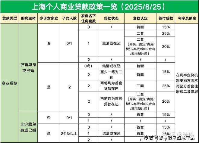 商业贷款首套二套首付比例暂未调整,首套首付 15%,二套首付 25%,二套购买五大新城(嘉定、青浦、松江、奉贤、临港新片区)及金山、宝山首付比例 20%。