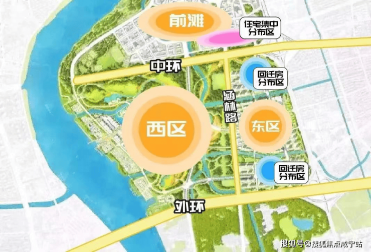 而前滩南滨江是紧贴着前滩的南面,二者的分界线就是中环路的道路中心线,是真正的“0”距离。