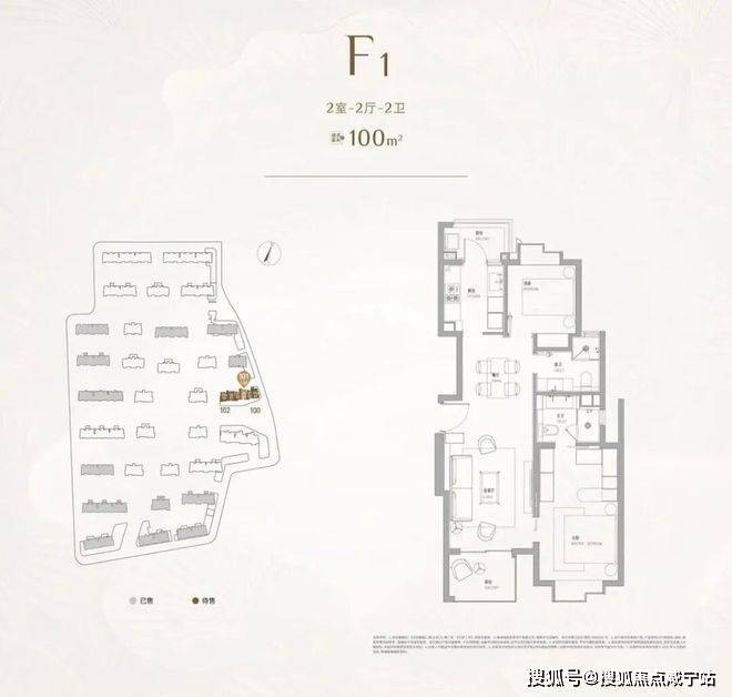 建面约100㎡2房2卫,总价约880起,单身都市菁英、年轻家庭上车首选!