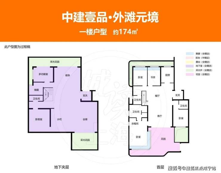 3、从户型设计来看,一楼户型附赠超大地下室及双层庭院;二楼户型附赠星空露台;三楼附赠露台及其他空间;户型实得率最大可以超过200%!平均也能达到约150%左右!