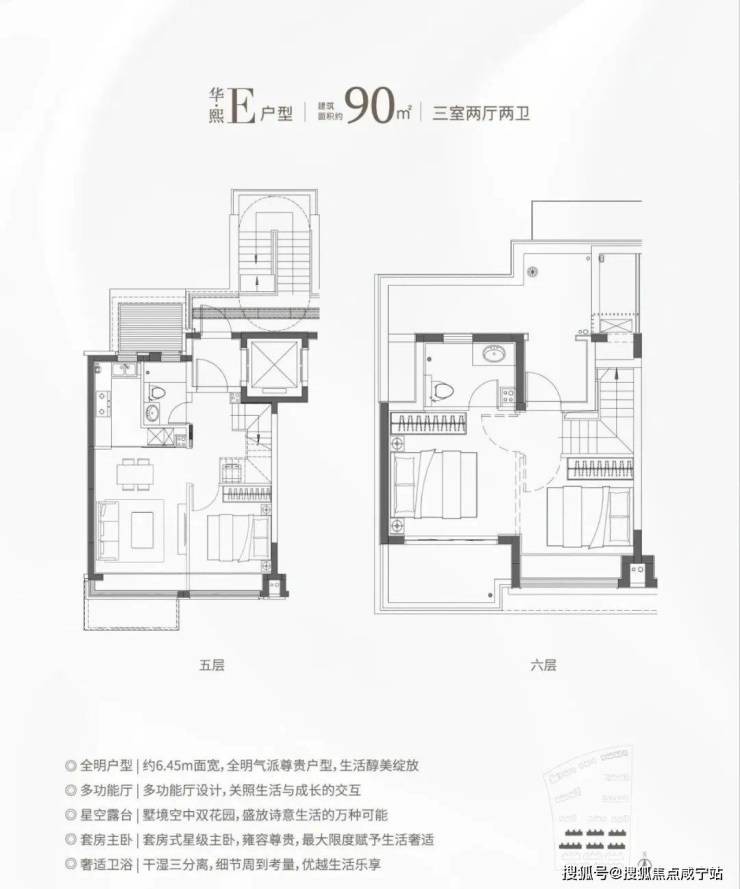 除了高层户型,项目还有建面约90-136㎡叠墅户型。叠加的优点非常多,相较于大平层,叠加区域分割清晰,会客区、休息区等可以明显区分开,互不干扰。同时,居住的私密性强,给到墅居的空间感,得房率相较于高层产品也更高。作为居住业态的高阶形态,舒适度和仪式感也更胜一筹!