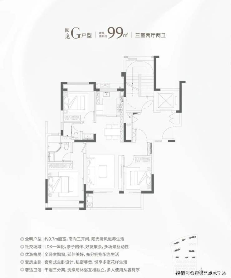 ①建面约99㎡F&G户型:南北通透+三开间朝南,备受认可的飞机户型!