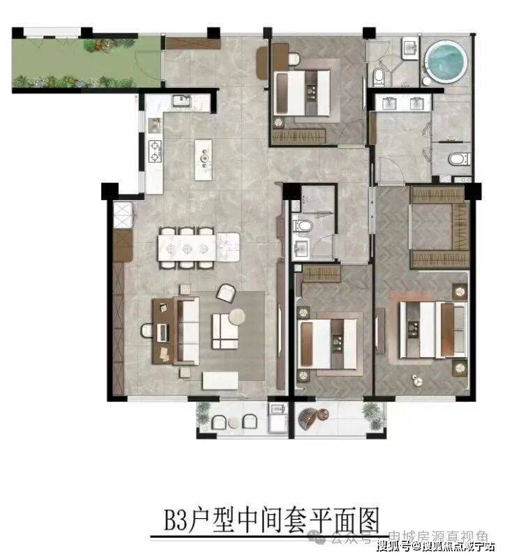 罕见三套房设计,全明三卫
