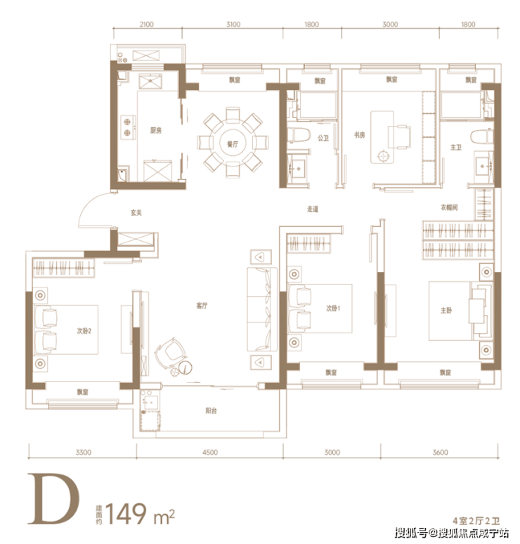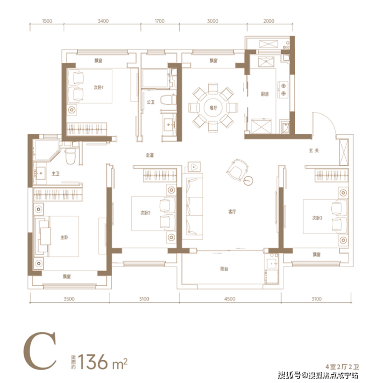 建面约136㎡客厅宽达4.5米,主卧宽3.5米,次房间分别达3.1米、3.4米,独立餐厅,靠窗南北通透。