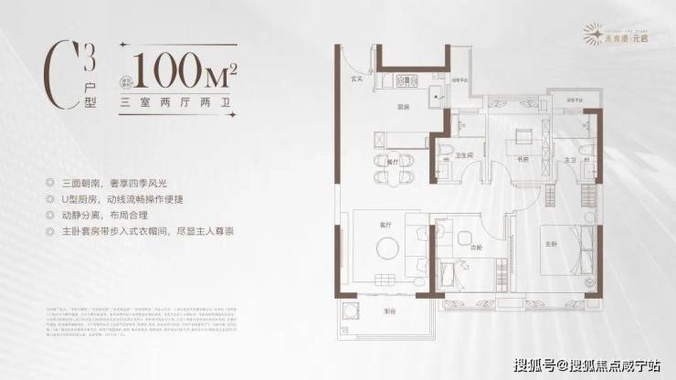 95 - 128㎡主流户型:集中在特定楼栋,为三房两卫设计,得房率约 78% 。特别是 115㎡的 “横厅” 户型,采用 LDKB 一体化设计(客厅、餐厅、厨房、阳台一体化),大大增强了空间感和家庭成员之间的互动性。客厅宽敞明亮,连接景观阳台,视野开阔;卧室分布合理,保证了居住的私密性。