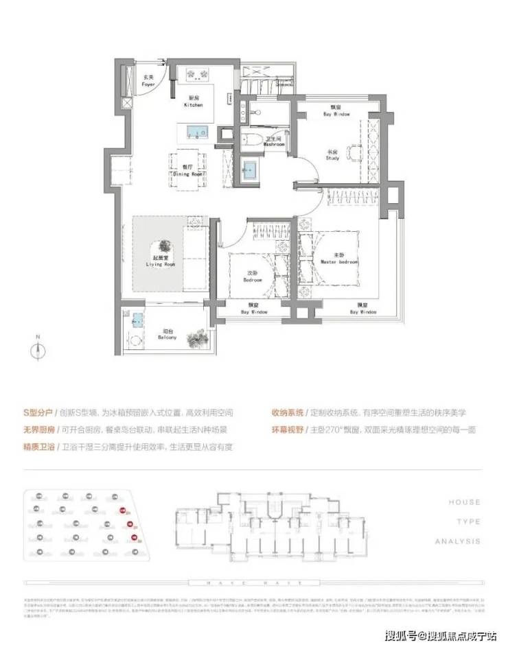 小户型做到了全明3房,动静分离。小户型如何“越住越大”?这就不得不提到这个户型的一大创新:S墙。