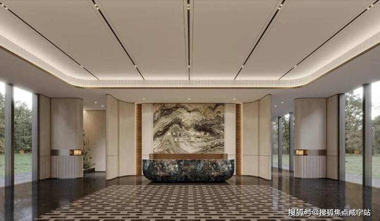 项目东西两侧以酒店为灵感打造的门厅,以奢石为背景墙,东侧还有环形落客区,强烈的归家仪式感扑面而来。