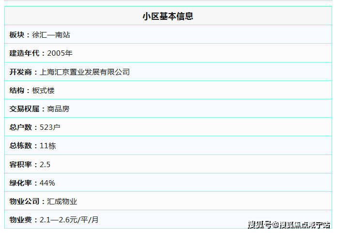 【汇京佳丽苑】小区建于2005年,位于石龙路999弄;它最大的资本就是其无可替代的地理位置和成熟的周边环境。是上海徐汇区一个非常典型的“地段+品质”型住宅小区,通身大理石铺制,小区24小时有安保巡逻,物业负责认真,严格停车管理,定期清扫,出入人员严格登记。凭借良好的维护和管理,它依然是该区域内极具竞争力的宜居选择。