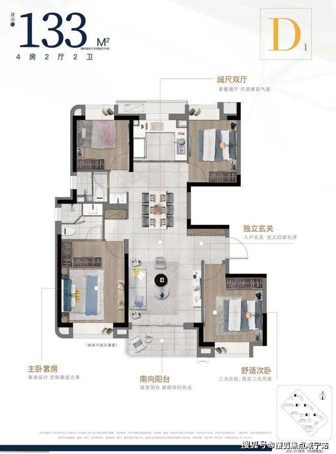 项目以1.5超低容积率打造纯洋房+小高层社区,主力95-120㎡全系精装3-4房,采用"紫金系"高端产品线标准4。约3.1米层高+全景落地窗设计,实现科创精英对通透空间的极致追求;人脸识别安防系统、透水铺装技术等细节,呼应临港"海绵城市"发展理念3。