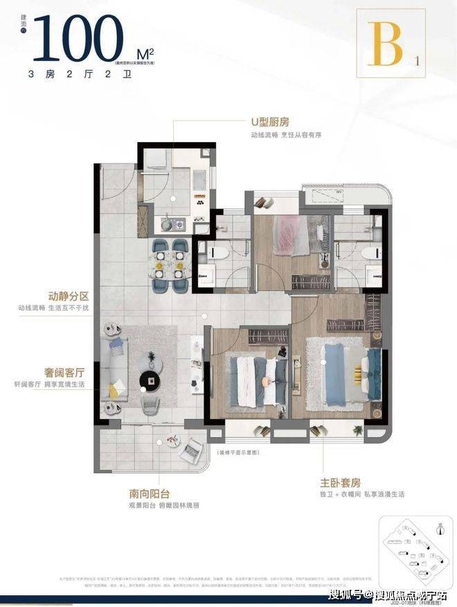 建面约100㎡㎡三房两卫:均价约3.25万/平