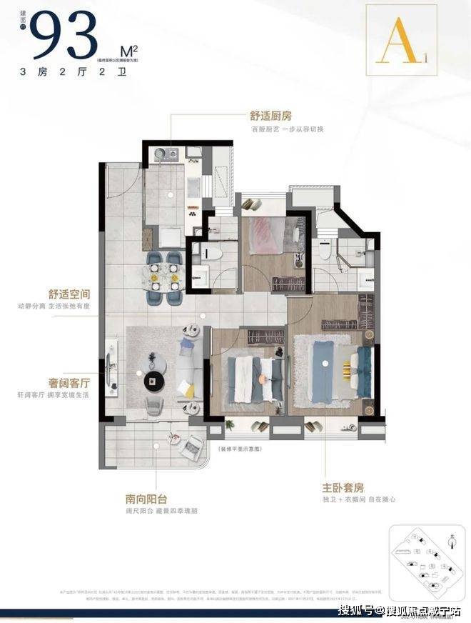 建面约93㎡三房两卫:均价约3.15万/㎡