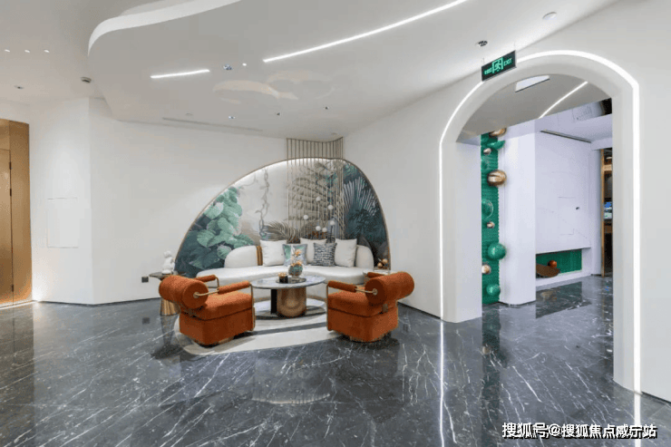 大堂内部如同星级酒店一般色彩明亮、品质感十足.