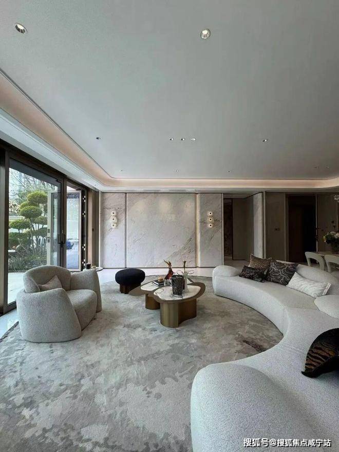 项目建面约228㎡下叠地上2层,其中1层南向私家花园入户,进门后就是超大餐客厅,层高约3.4米(远超好房子3米的标准),开间约7米,整体面积超60㎡,世家大宅的不凡气度一下子扑面而来!
