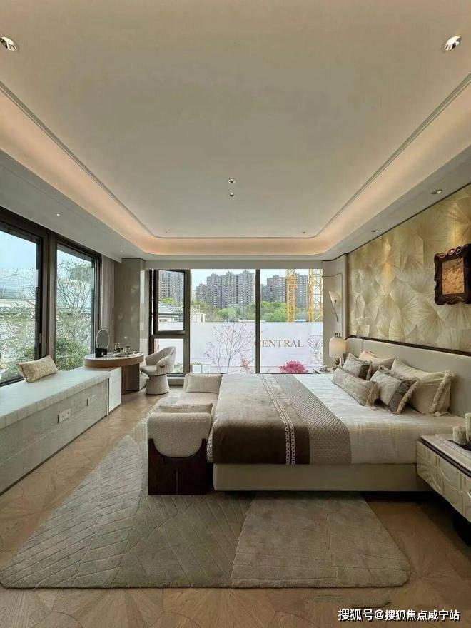卧室一共4个,全部朝南,让全家人起居都沐浴充足阳光!其中一层卧室可以做老人房,二层3个卧室尺度都较为阔绰,尤其主卧整体面积超50㎡,还有270°转角飘窗,豪宅主卫,步入式衣帽间全部安排上绝对没问题。