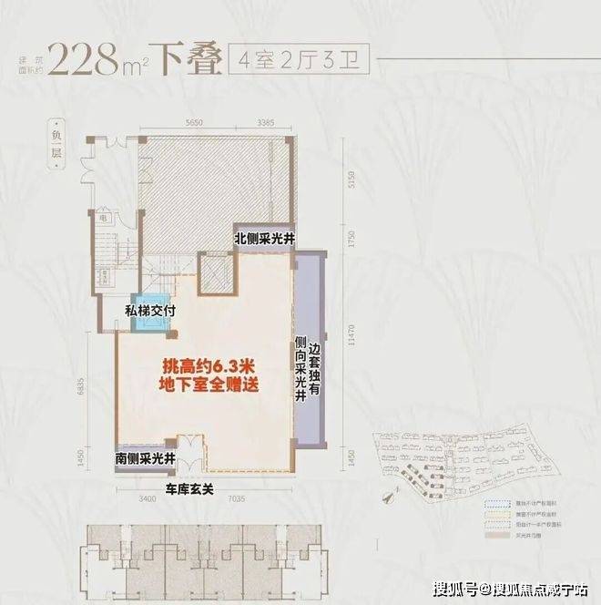 首先,上叠是北向私享入户花园,独门独户,室内私家电梯,尊崇感与私密性都有保障。而且上叠也有地下空间,下单层面积约55㎡,层高达约6.3米,完全做可以做双层使用。