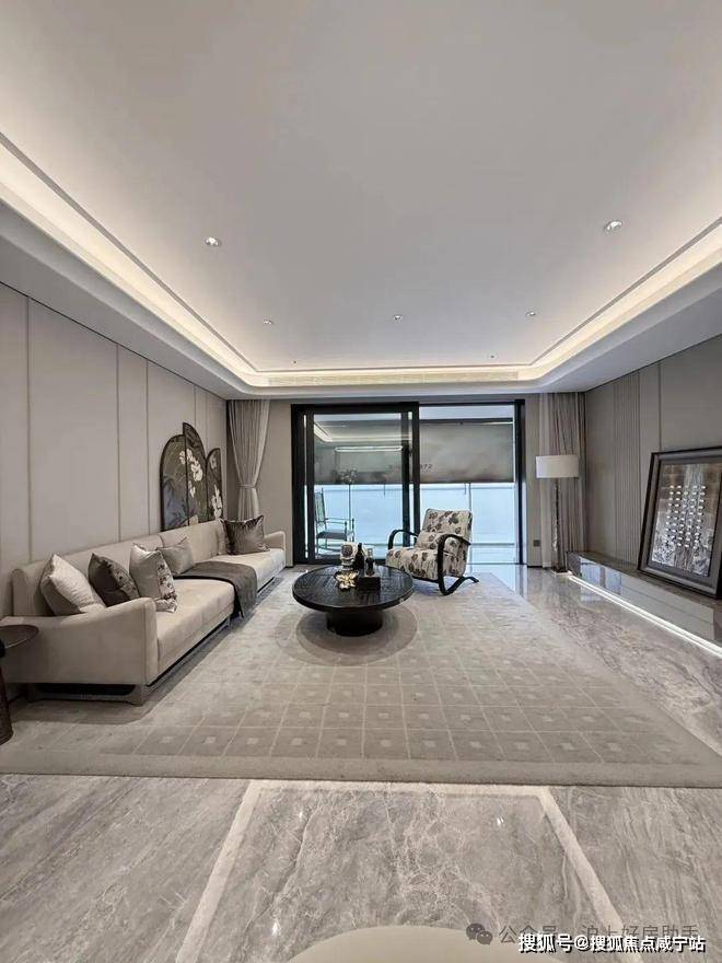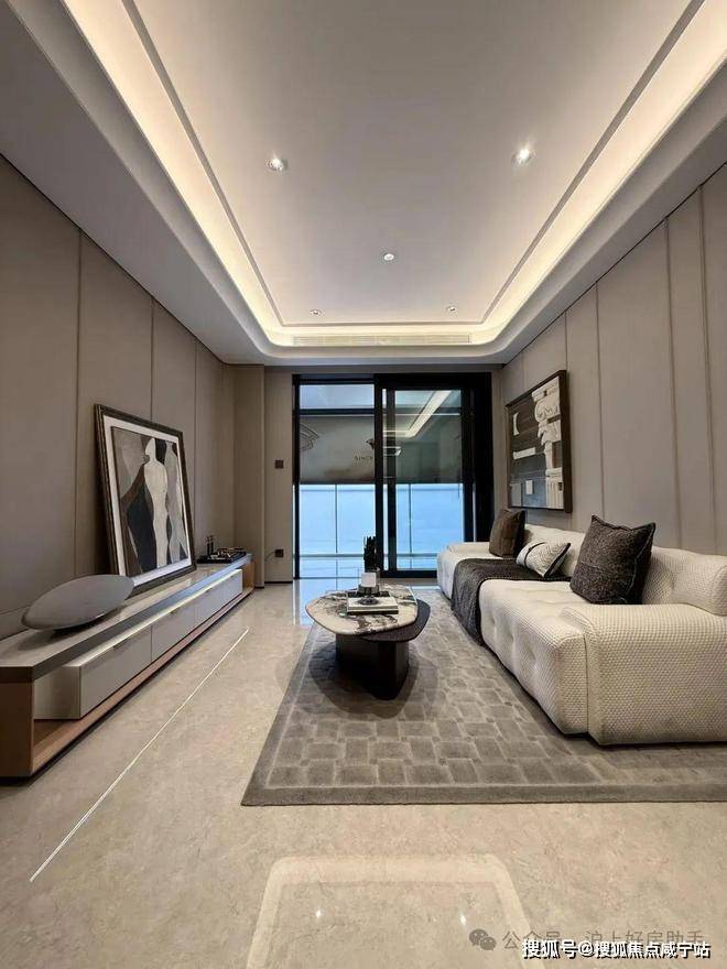 电视背景墙采用卡慕白的石材+皮革造型,弧形吊顶,相当讲究,连空调出风口的形状都打造为海上·清和玺logo山茶花的形状~~三大件为大金(或同等档次)中央空调和地暖,新风系统为百朗(或同等档次),南向阔景阳台,采光视野一级棒!海上清和玺售楼处电话☎:400-8800-703✔✔✔【预约☎】