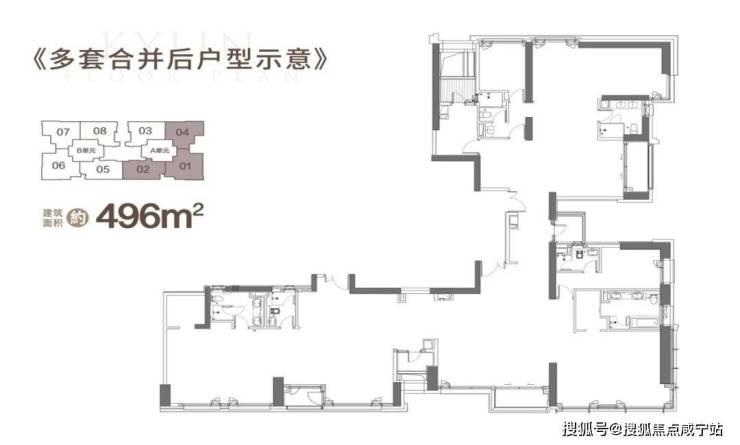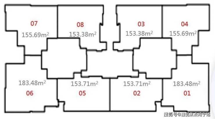 •该栋分为A/B单元,每个单元有四个单位:包含3套150㎡及1套180㎡,平面布局与住宅相似;