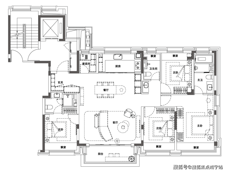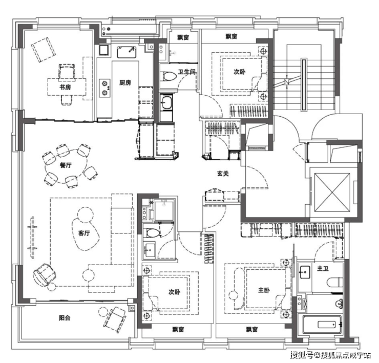 最后我们来看这个紧凑的宽厅三居。