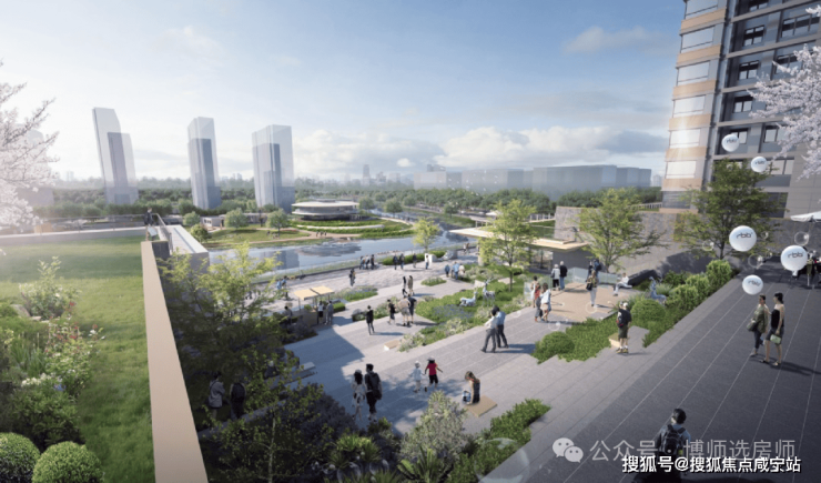 同时有大体量商办、产业存在,全市人流就会来此消费、上班。特别还有约20万方滨水公园的营造,周边居民都会来此休闲娱乐,甚至成为网红打卡地。