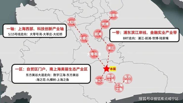 产业势能“一带一轴一区”三轴交汇 千亿级产业势能叠加全球视野下的金汇,承载东方美谷美丽生态产业、浦东金融实业产业、大零号湾科技创新产业三轴合一的梦想,正朝着南上海中心湾的目标跃进。