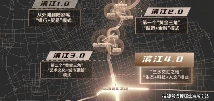 滨江 2.0 阶段,第一个“黄金三角”形成,“航运+金融”模式推动了城市的繁荣;