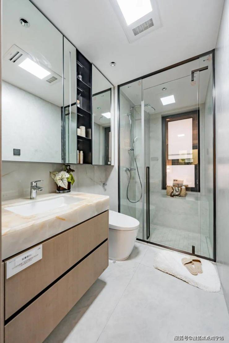 此外,开放式厨房设计,结合长桌岛台,满足了现代人对中西厨的需求。尊崇的套房主卧更是配置了双盥洗台盆卫浴,仿佛置身于高端豪华酒店之中,尽显男女主人的尊贵感。