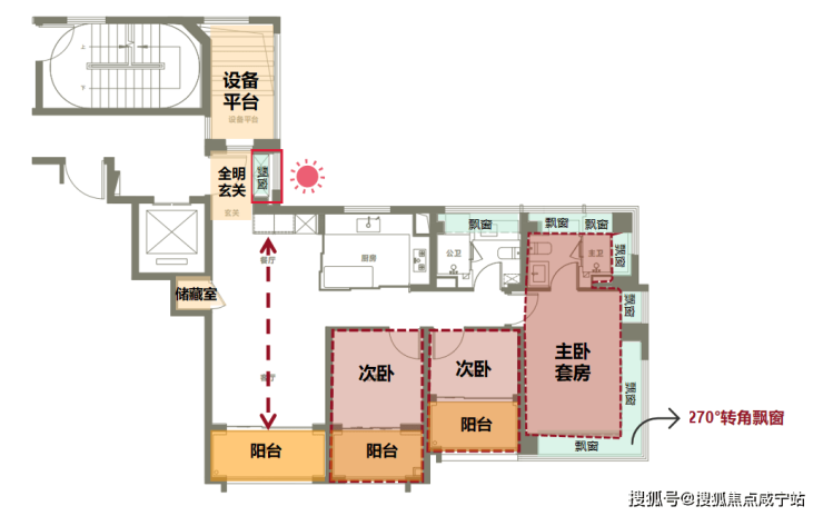 每个户型都可圈可点,以主力建面约123㎡3房为例。
