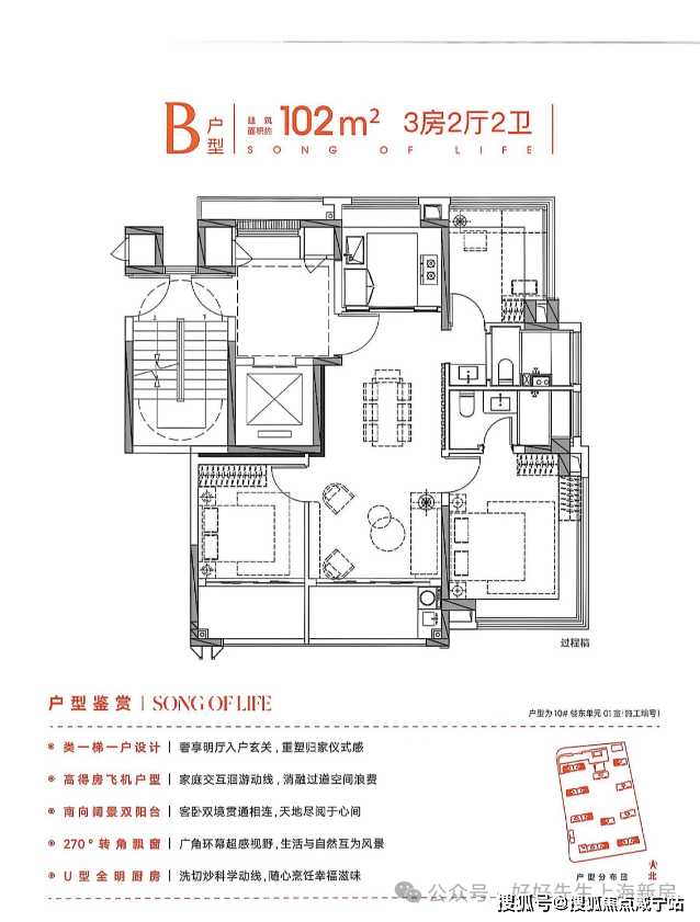 ②、建面约102㎡3/2/2,景观与实用平衡得恰到好处