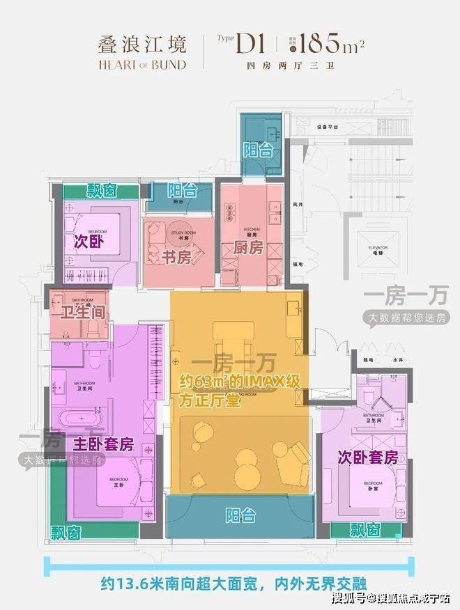 搭配约13.6米南向超大面宽与超63㎡IMAX方正客餐厅,实现了真正的江景与园境双重占有——