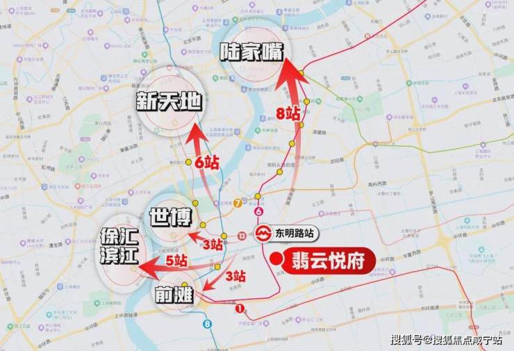 3站前滩/世博、5站徐汇滨江、6站新天地/世纪大道、8站南京西路/陆家嘴。